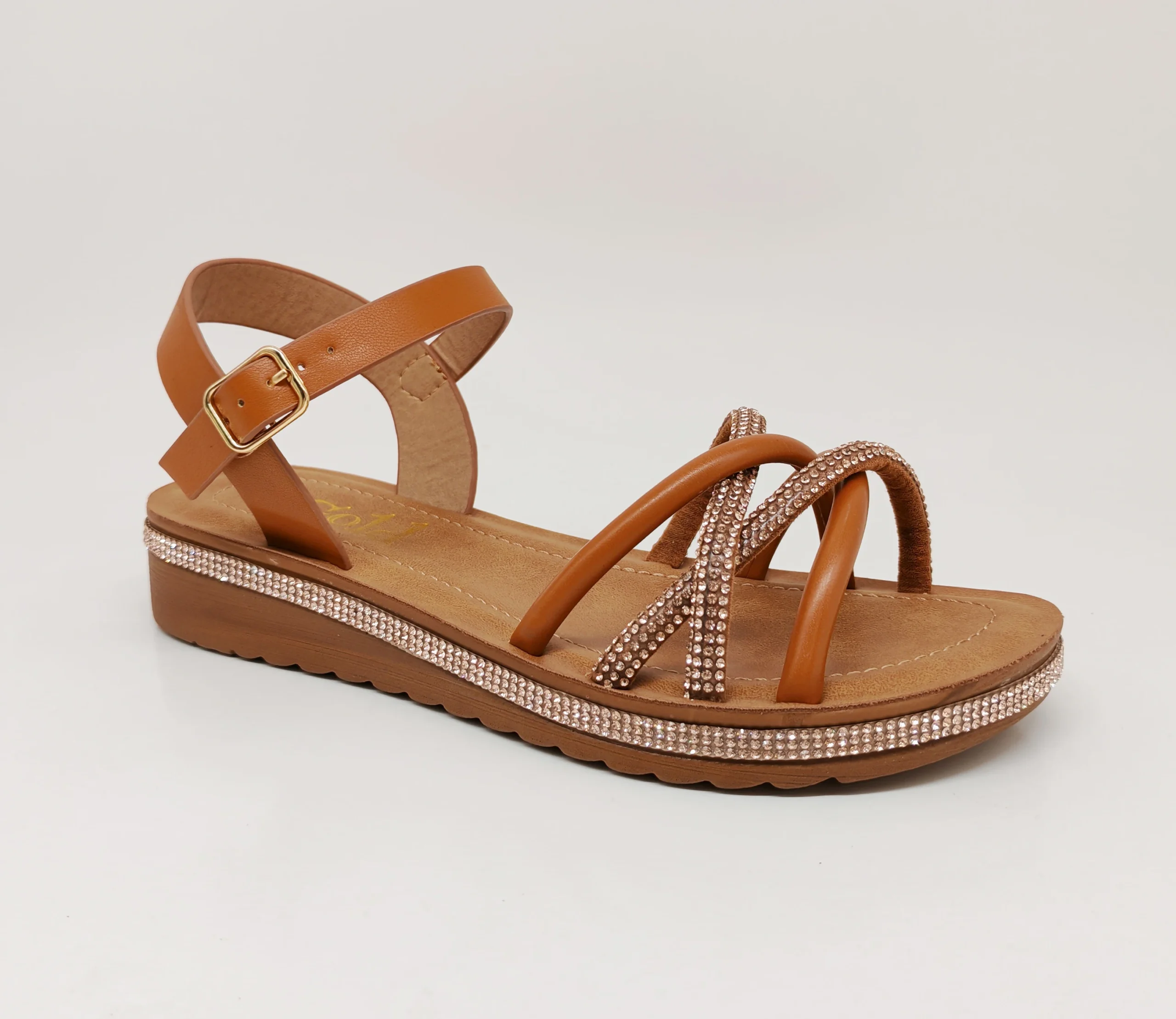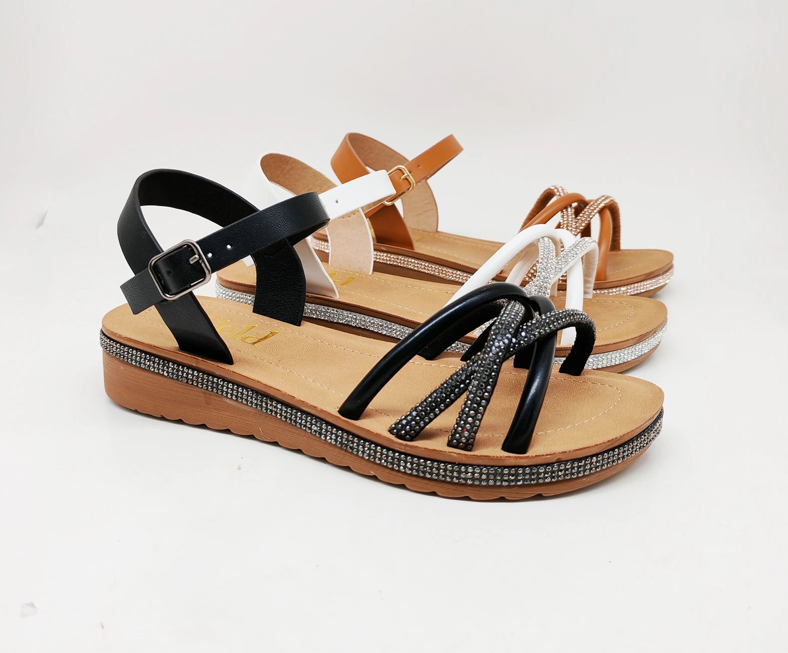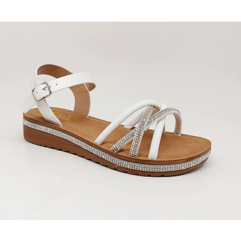 Durable Elegant White PU Sandals Adjustable Strap Women Sandals Wedge Heel Summer Outdoor Sandals With Diamonds